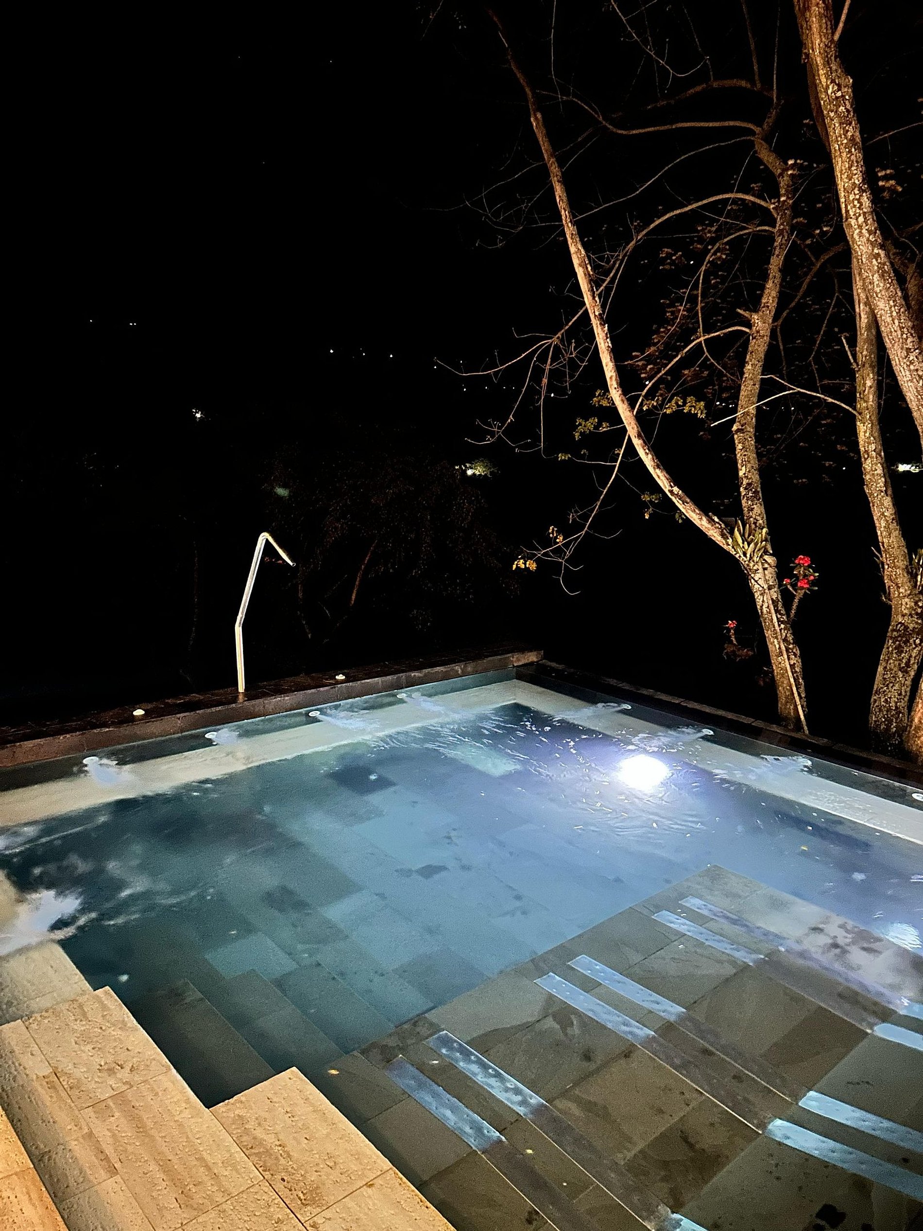 ❖ La sala de estar en el hall de alcobas del 2do piso cuenta con TV y roku. Luego está la terraza que es amplia y tiene una chimenea. ❖ Todas las alcobas cuentan con baño privado.. ❖ Habitación principal con cama king, aire acondicionado y smart TV de 60 pulgadas. ❖ Habitación 2 con 2 camas bajas, esta habitación se comunica con la habitación principal pensada en acomodar los hijos pequeños. ❖ Alcoba 3 con cama doble y cama sencilla. También con su balcón, ventilador de techo y baño privado muy amplio. ❖ Alcoba 4 con 2 camas dobles. También con su balcón, ventilador de techo y baño privado. ❖ Alcoba 5 con 2 camas dobles, balcon, ventilador de techo y baño privado. ❖ Alcoba 6 con 1 cama doble y 2 camas sencillas, balcon, ventilador de techo y baño privado. ❖ Alcoba 7 esta en el primer piso tiene 1 cama doble y 1 cama sencilla, ventilador de techo y baño privado.❖ Cada habitación tiene ventilador de techo que se maneja con control remoto, y con ese mismo control se maneja la luz de la habitación. ❖ Las camas estaran tendidas con su correspondiente juego de cama y almohada, si lo necesita puede pedir cobijas adicionales para el frio. En cada baño encontrará jabón líquido, papelera y papel higiénico. También se entregará una toalla de cuerpo a cada huésped. ❖ La casa cuenta con un sistema de vigilancia con cámaras a las zonas comunes y entradas de la casa, sensores de movimiento y de rotura de vidrio. ❖ La casa tiene internet con 2 redes wifi, una para el primer piso y otra para el segundo piso. El mayordomo le entregará las claves al llegar. PISCINA Y JACUZZI ❖ El jacuzzi y la piscina están integrados a la casa. ❖ Entre la piscina y el jacuzzi hay un espejo de agua que une las 2 zonas. ❖ El jacuzzi con capacidad para más de 20 personas. Cuenta con 11 chorros, 3 tumbonas y un chorro fuerte que puede ser usado para hacer masaje en espalda y cuello. La temperatura del agua se puede graduar para que esté más o menos caliente. ❖ La piscina es infinita que permite admirar totalmente el paisaje. La profundidad máxima es de 160 cms. ❖ El revestimiento de la piscina es color oscuro que hace juego con la naturaleza y el color del agua es tomado del color del cielo. ❖ Es una piscina de sal, lo que significa que para su limpieza se utiliza cloro obtenido de la sal. ❖ Desde la piscina se puede observar el camino vehicular, el camino peatonal que llega al kiosco. KIOSCO, GRANJA ❖ Se puede realizar caminata dentro de la finca, yendo desde la casa hasta el lago, pasando por el kiosco, pesebrera y gallinero. ❖ El kiosco es amplio, cuenta con estufa de leña, horno de barro y asador de parrilla con leña o carbón, con un comedor en madera burda con una capacidad de 16 personas aproximadamente. Aquí pueden hacerse asados, sancochos, pizza en el horno y demás preparaciones que consideren. El kiosco también cuenta con un baño. El kiosco está conectado a la casa por unas escaleras desde el billar. ❖ Dentro de la finca existe un lago de pesca, es poco profundo (1 metro aprox). No es para bañarse, solamente para contemplar o pescar. ❖ La finca tiene diversos árboles frutales, de mango, naranja, mandarina. Pueden recolectarse algunas frutas para el consumo dentro de la estadía.