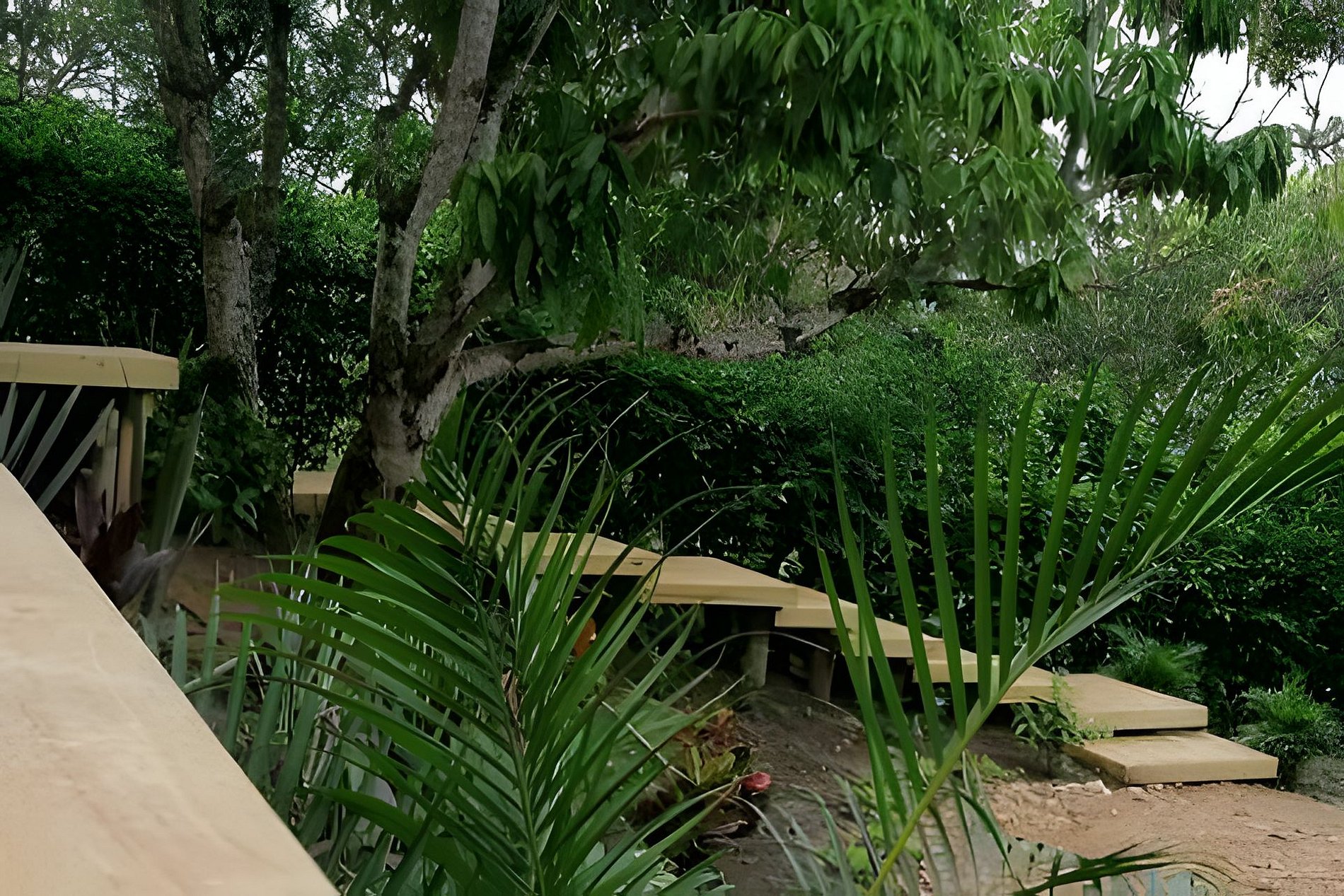 La sala y comedor está ubicada bajo árboles y desde ahí se tiene una vista panorámica hacia dentro y fuera de la casa. Cuenta con un juego de muebles rústicos en madera compuesto por 2 sofás de 3 puestos y 1 mesa de centro.