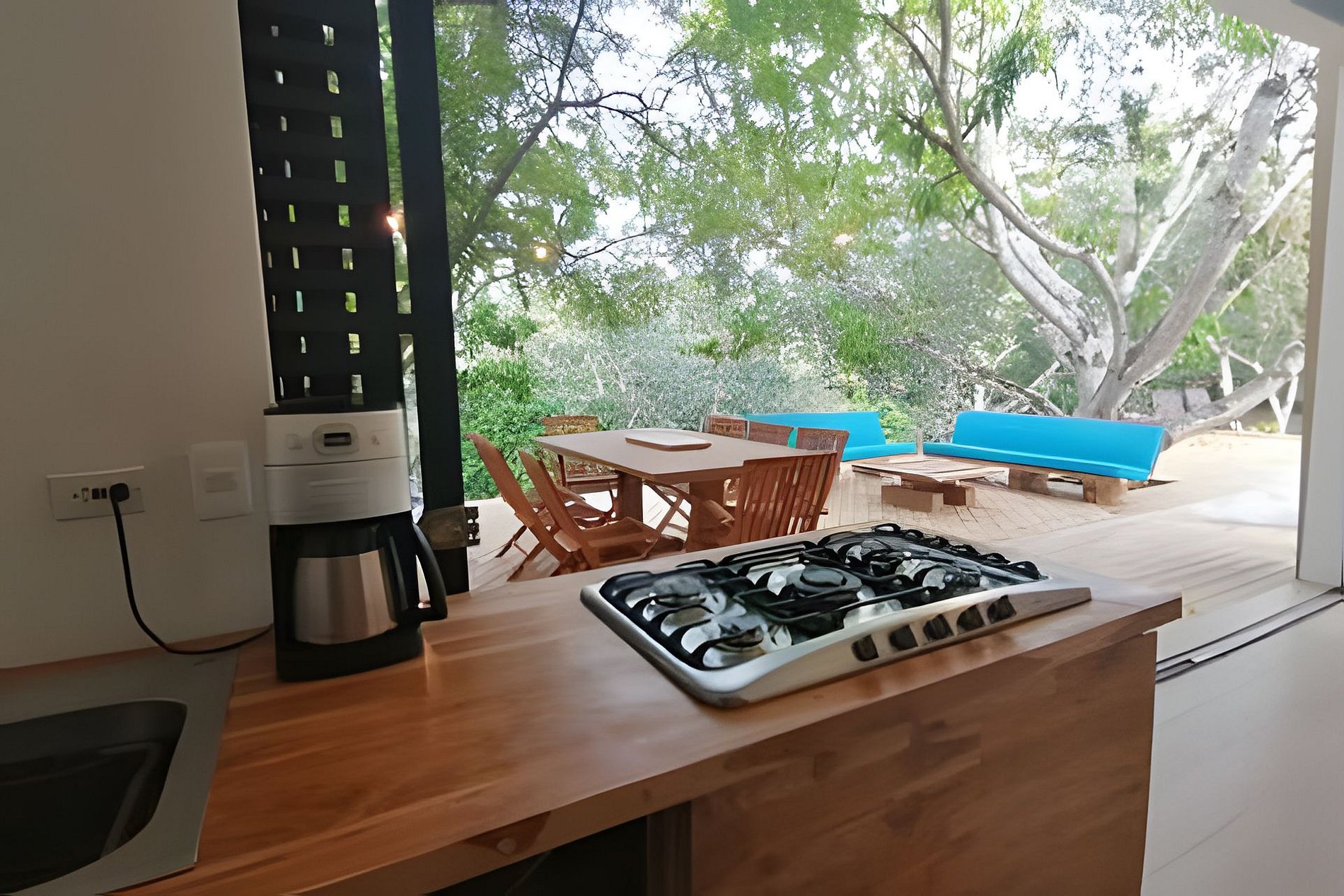 La segunda parte de la casa es cubierta y cuenta con cocina, TV, y 2 habitaciones cada una con baño privado.