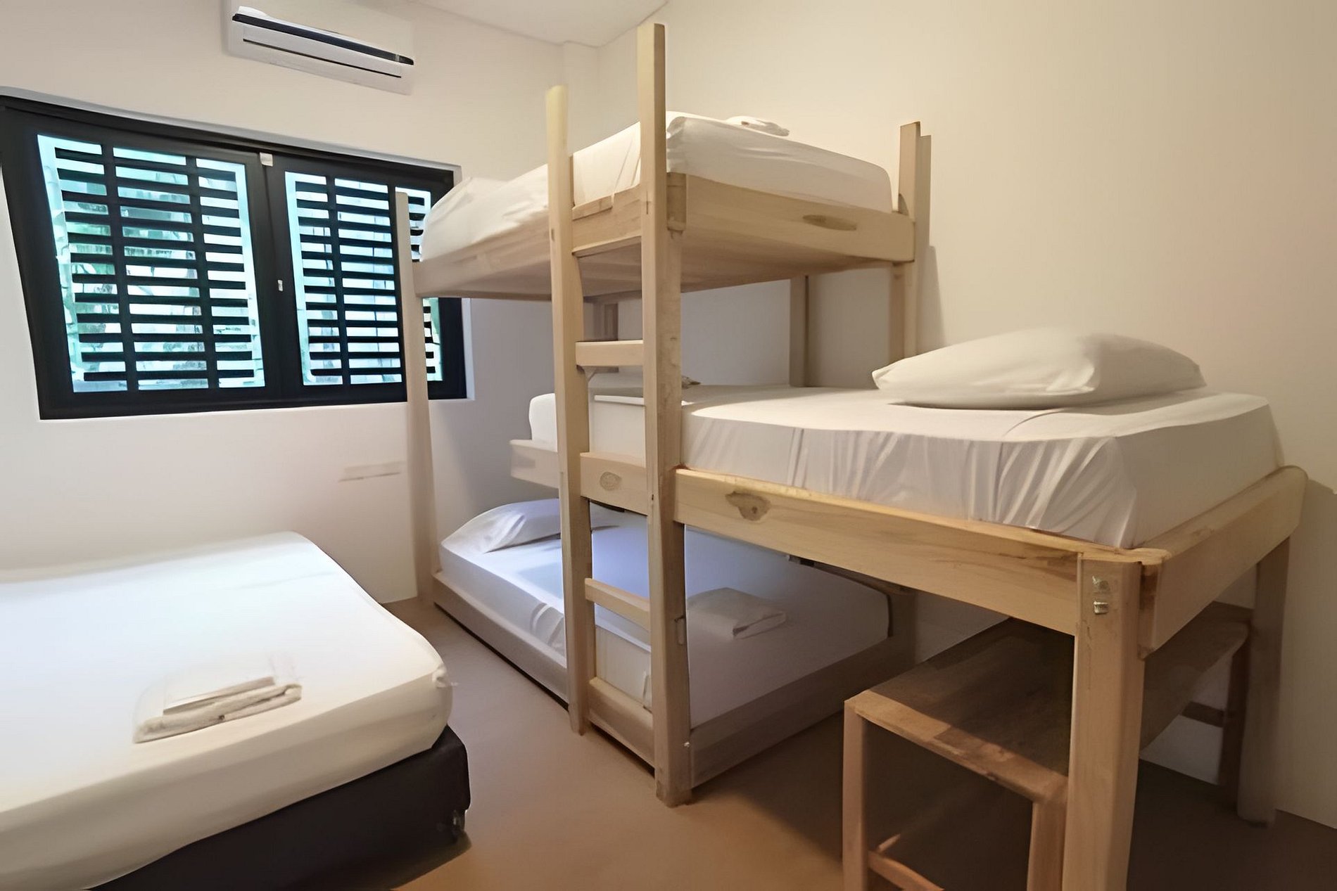Las 2 habitaciones son iguales, tiene aire acondicionado, una cama doble y un camarote de 3 niveles para una acomodacion de 5 personas en cada habitación.